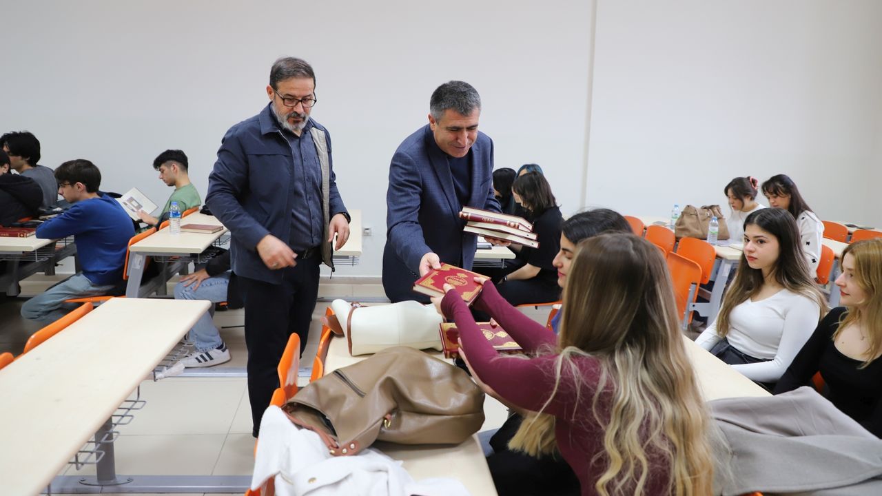 Öğrencilerle bir süre sohbet ederek görüş, talep ve önerilerini dinleyen Rektör Aktekin ayrıca öğrencilere, Diyanet İşleri Başkanlığı tarafından hazırlanan İngilizce ve Almanca Kur’an-ı Kerim mealleri ile Turizm Ltd. Şti. Sahibi Selami Küsmez tarafından bağışlanan Kapadokya konulu çok dilli kitaplar hediye etti.