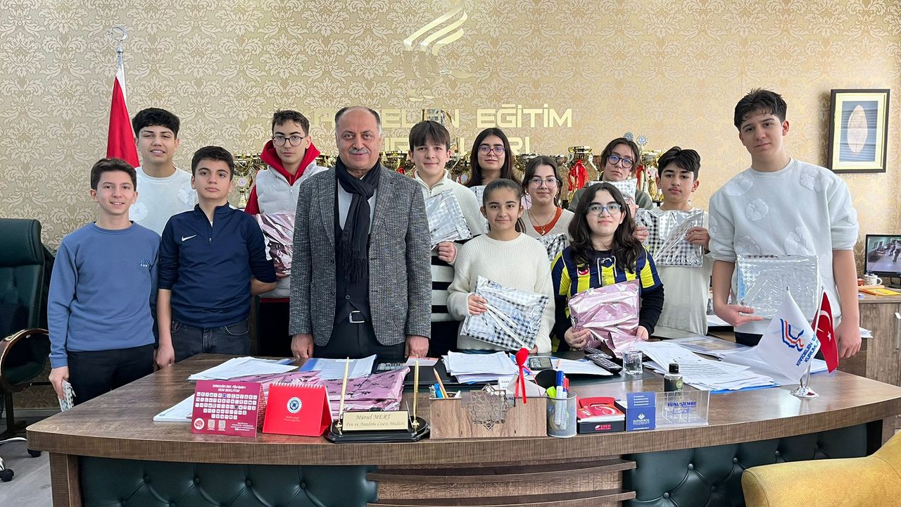 Eğitim hayatlarına Kardelen’de devam etmek isteyen ortaokul öğrencilerini misafir eden Kardelen Eğitim Kurumları Fen ve Anadolu Lisesi Müdürü Mürsel Mert, öğrencilere çeşitli ikramlarda bulundu.