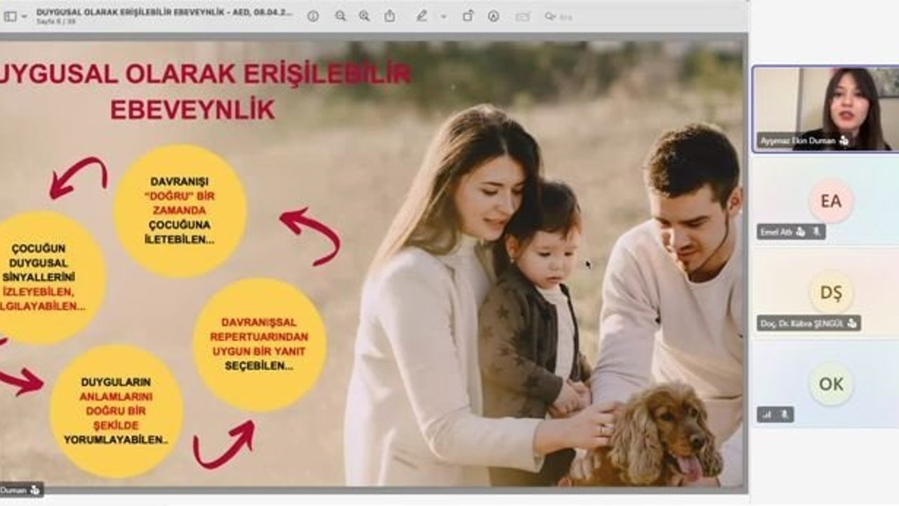 Duygusal erişilebilirliği “iki kişinin birbirlerinin duygularını anlamaya, ifade etmeye ve bu duygulara yanıt vermeye açık olduğu karşılıklı bir etkileşim durumu” olarak tanımlayan Duman, bu sürecin karşılıklılık temelinde geliştiğini ifade etti. Ebeveynin rolünün; çocuğun duygusal sinyallerini fark etme, doğru yorumlama ve uygun tepkilerle karşılık verme çerçevesinde şekillendiğini belirten Duman, “çocuğun duygusal sinyallerini fark ederek uygun bir yanıt verebilme” becerisinin sağlıklı ebeveynlik sürecinin temel bileşenlerinden biri olduğunu vurguladı.