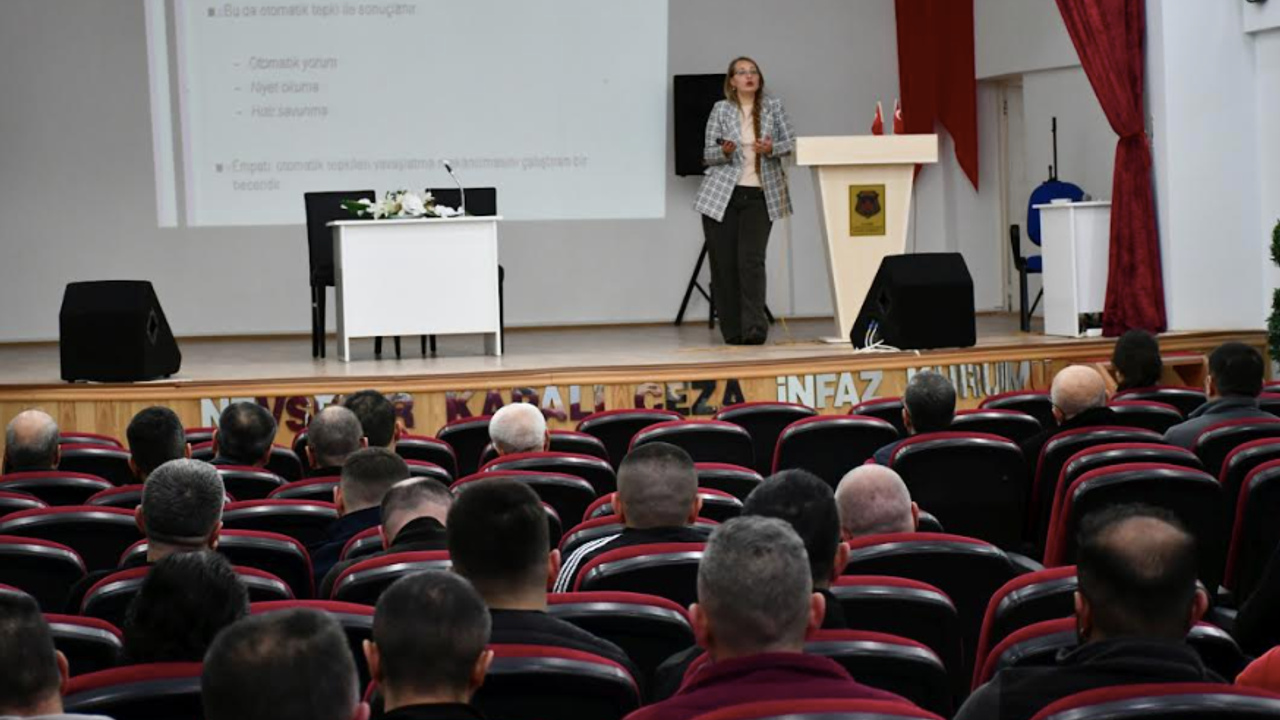 Nevşehir Hacı Bektaş Veli Üniversitesi (NEVÜ) Fen Edebiyat Fakültesi öğretim üyesi Dr. Öğr. Üyesi Nilgün Türkileri Arman, Nevşehir E Tipi Kapalı Ceza İnfaz Kurumu’nda hükümlülere yönelik “Empati: Tepkileri Yönetme Becerisi” konulu seminer verdi.
