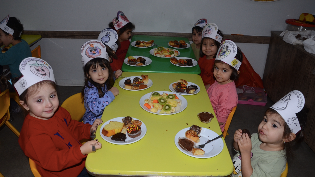 Minik öğrenciler, kendileri için özel olarak hazırlanan yemekhanede yerli meyvelerle birlikte ev yapımı ürünleri hep birlikte tüketti.