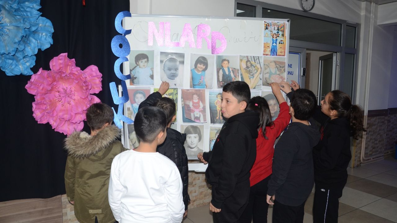 Öğretmenlerin çocukluk fotoğraflarıyla şimdiki fotoğrafları “Bir nesil bir öğretmen” temasıyla etkinlik köşesine asıldı.