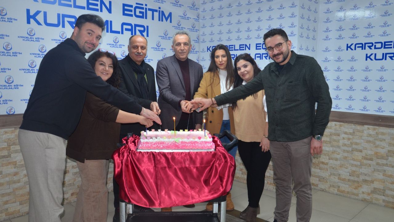 Kardelen Eğitim Kurumları Fen ve Anadolu Lisesi Müdürü Mürsel Mert, İlköğretim Müdürü Burhan Kaynar ve müdür yardımcılarının katıldığı pasta kesiminde velilere teşekkür edildi.