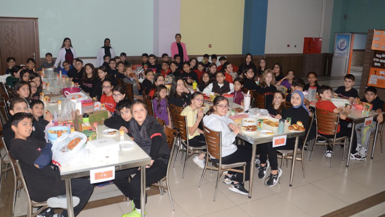 Yiyecekleri evde aileleriyle birlikte hazırlayan öğrenciler yemekhanede buluşarak getirdikleri yiyecekleri hep birlikte yedi.