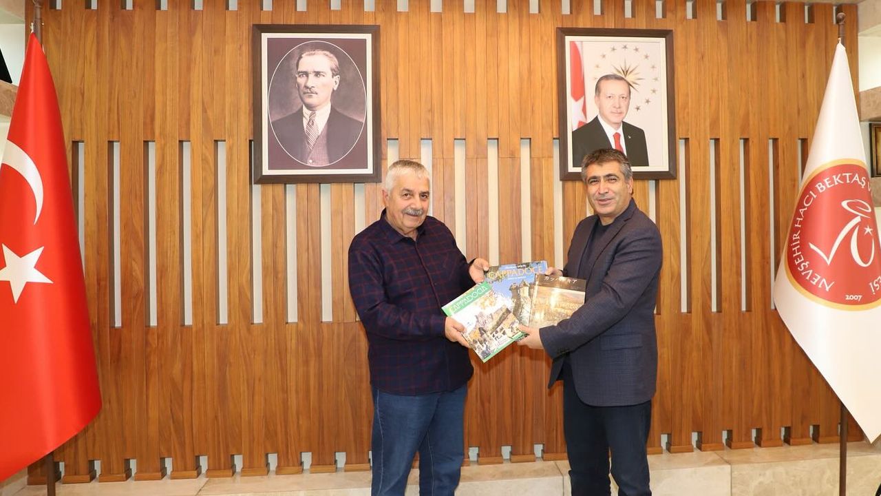 Nevşehir Hacı Bektaş Veli Üniversitesi (NEVÜ) Rektörü Prof. Dr. Semih Aktekin, Dünya Turizm Ltd. Şti. Sahibi Selami Küsmez’i üniversitede ağırladı. Rektörlük Makamında gerçekleşen ziyarette, bölge turizminin gelişimi ve üniversite-sektör iş birliğine dair görüş alışverişinde bulunuldu.