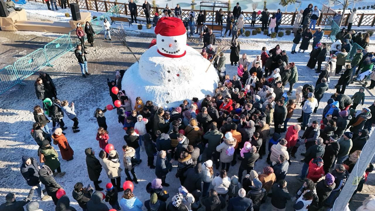 Beyaz örtünün zarafetini paylaşmak ve vatandaşlara keyifli anlar yaşatmak amacıyla dört buçuk metre boyunda ve yaklaşık 30 ton kar kullanılarak oluşturulan Dev Kardan Adam misafirlerinden yoğun ilgi gördü.