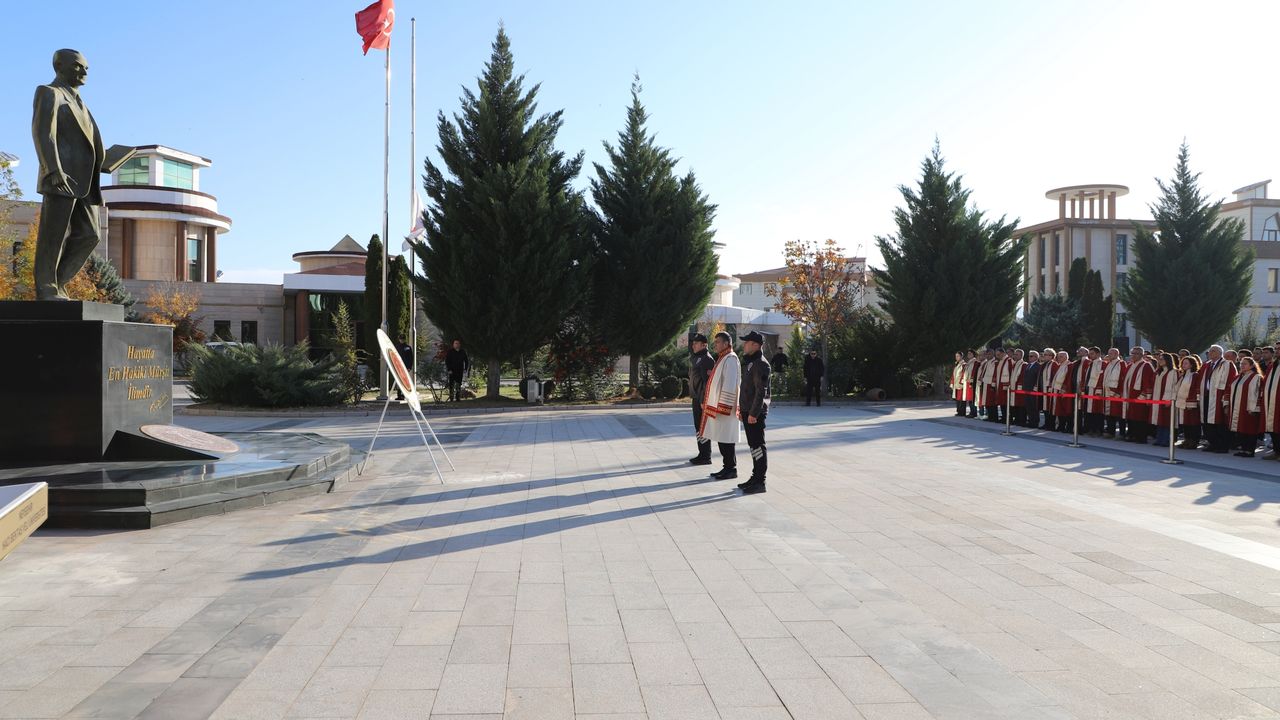 Rektör Prof. Dr. Semih Aktekin’in Atatürk heykeli önüne üniversitenin çelengini bırakmasıyla başlayan tören Gazi Mustafa Kemal Atatürk’ün ebediyete intikali olan saat 09.05’te, Atatürk, silah arkadaşları ve tüm aziz şehitler için iki dakikalık saygı duruşunun ardından İstiklal Marşı’nın okunmasıyla sona erdi.