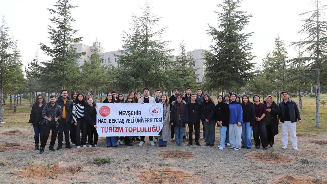 Nevşehir Hacı Bektaş Veli Üniversitesi (NEVÜ) Turizm Fakültesi bünyesinde faaliyet gösteren Turizm Topluluğu, Yeşil Yerleşke Koordinatörlüğü iş birliğiyle çevre duyarlılığını artırmak, sürdürülebilir turizm bilincini geliştirmek ve kampüsün yeşil alanlarına katkı sunmak amacıyla fidanları toprakla buluşturdu.